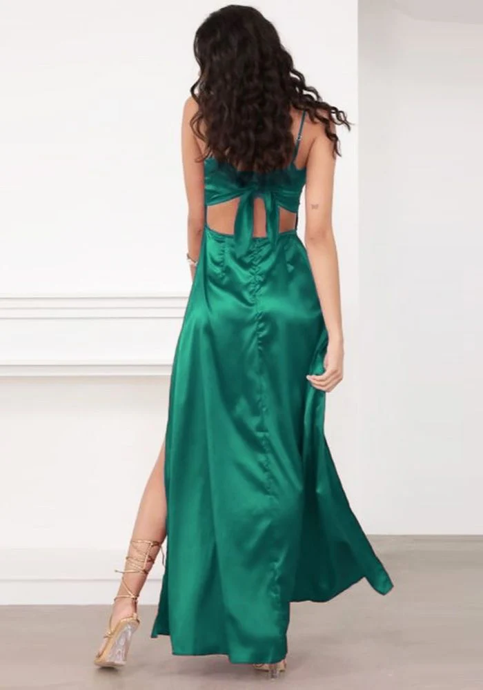 Attention soyez prête à devenir la femme la plus séduisante de la soirée, avec cette éblouissante robe en satin ! Ce magnifique vert émeraude satiné ne vous laissera pas passer inaperçue. Avec le buste cintré puis évasé à partir de la taille, la coupe de cette robe est parfaite. On craque pour ce décolleté carré à fines bretelles, qui est à nouer dans le dos.