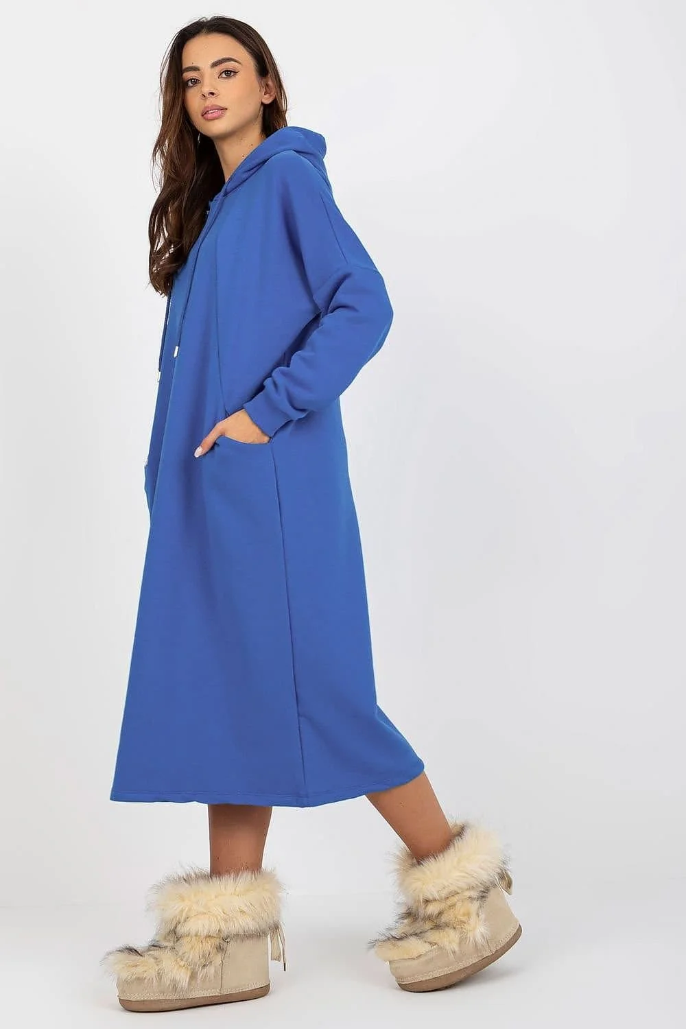 Plongez dans un confort inégalé avec notre robe sweat bleue casual à manches longues. Son design ample et sa capuche vous dotent d’une allure décontractée, parfait pour les jours où le style ne doit pas rimer avec contrainte. Confectionnée dans un tissu riche en coton avec une touche d’élasthanne, cette robe de survêtement est la pièce maîtresse d’une garde-robe casual-chic. Les poches à glissière ajoutent une touche pratique tout en conservant l’élégance de la silhouette. Adoptez ce must-have pour vos brunchs décontractés ou vos balades en ville, et associez-la à des sneakers blancs pour une touche mode inédite. Osez la polyvalence avec cette pièce qui se prête à toutes vos envies de confort sans jamais négliger le style.