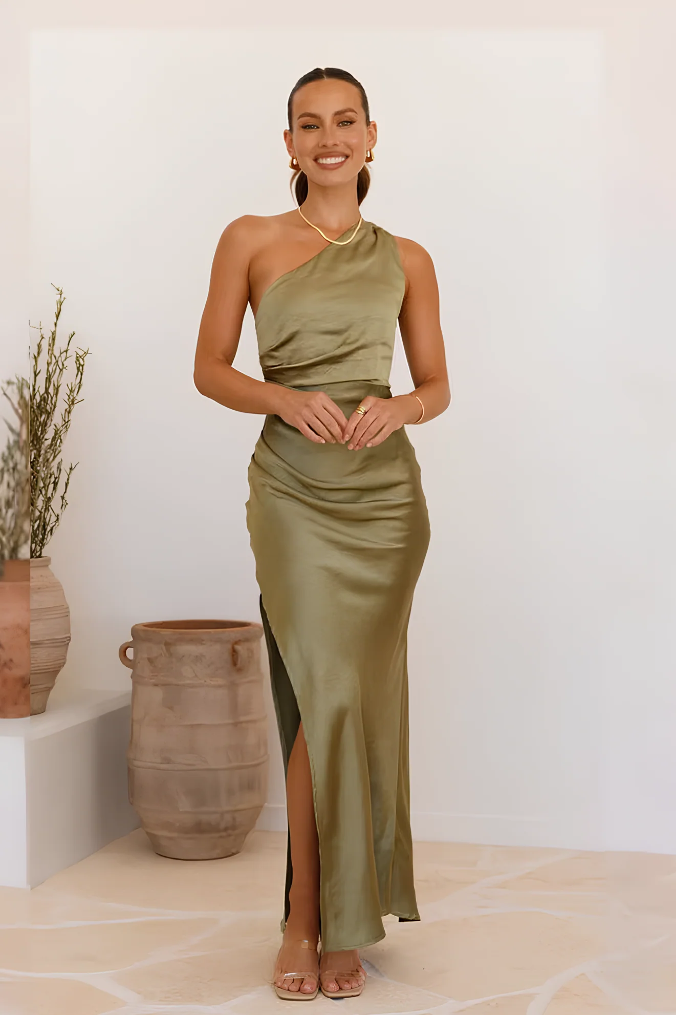 Adopte la Robe temoin vert olive et fais de chaque moment une occasion spéciale