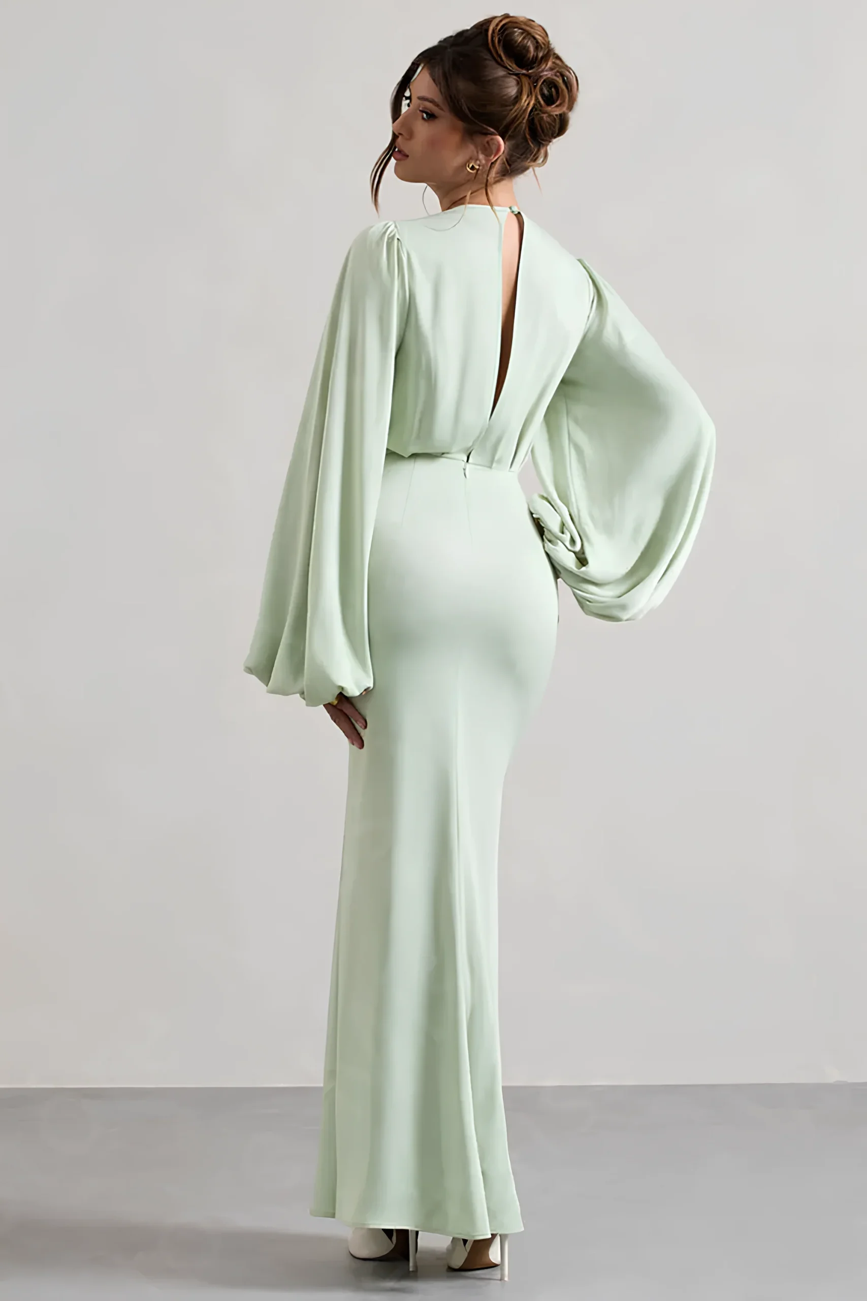 Chaque détail de cette robe a été conçu pour te mettre en valeur et faire ressortir ta beauté naturelle. Les manches bouffantes ajoutent une touche de sophistication, tandis que la couleur verte évoque un sentiment de renouveau et de vitalité.