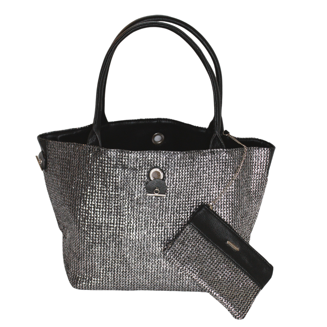 Sac à main fourre-tout réversible DAVID JONES. Fourni avec sa pochette, idéal pour y ranger les clefs, la petite monnaie ou encore son maquillage. La pochette peut être détachée au sac. Le sac peut se porter comme un sac cabas ou comme un sac seau grâce à la chainette présente sur les côté du sac.