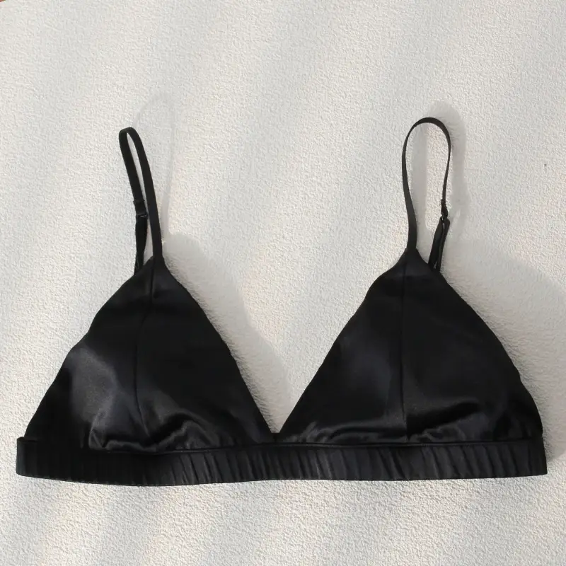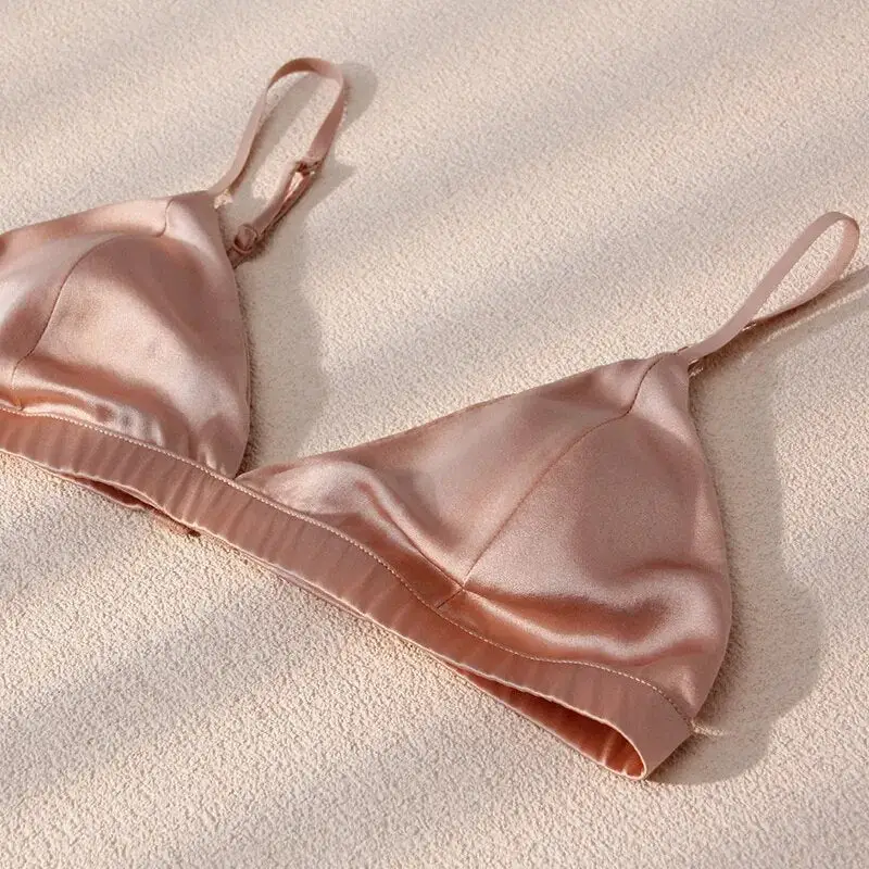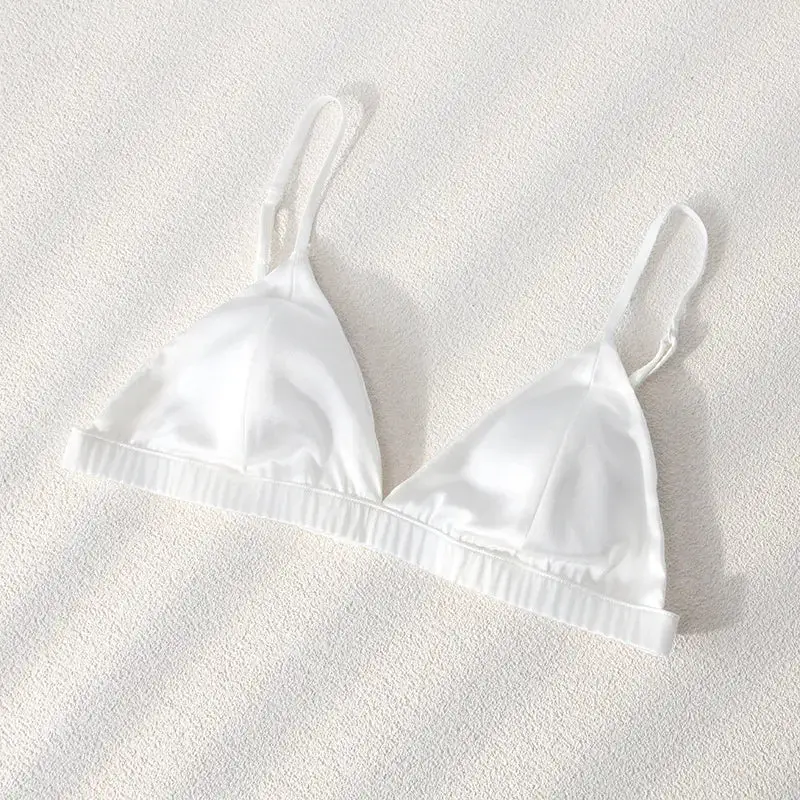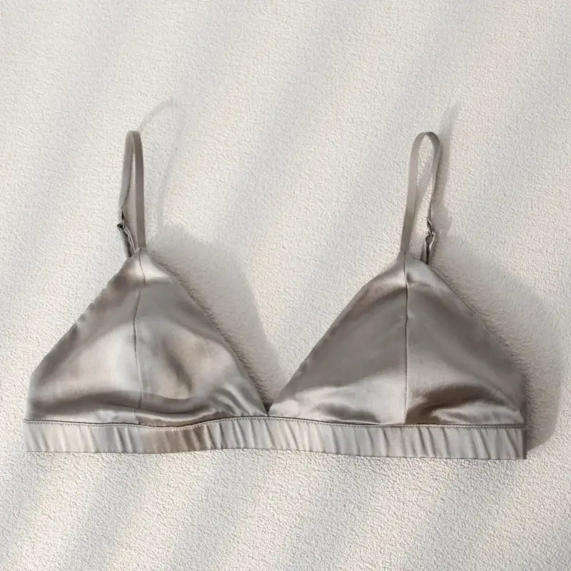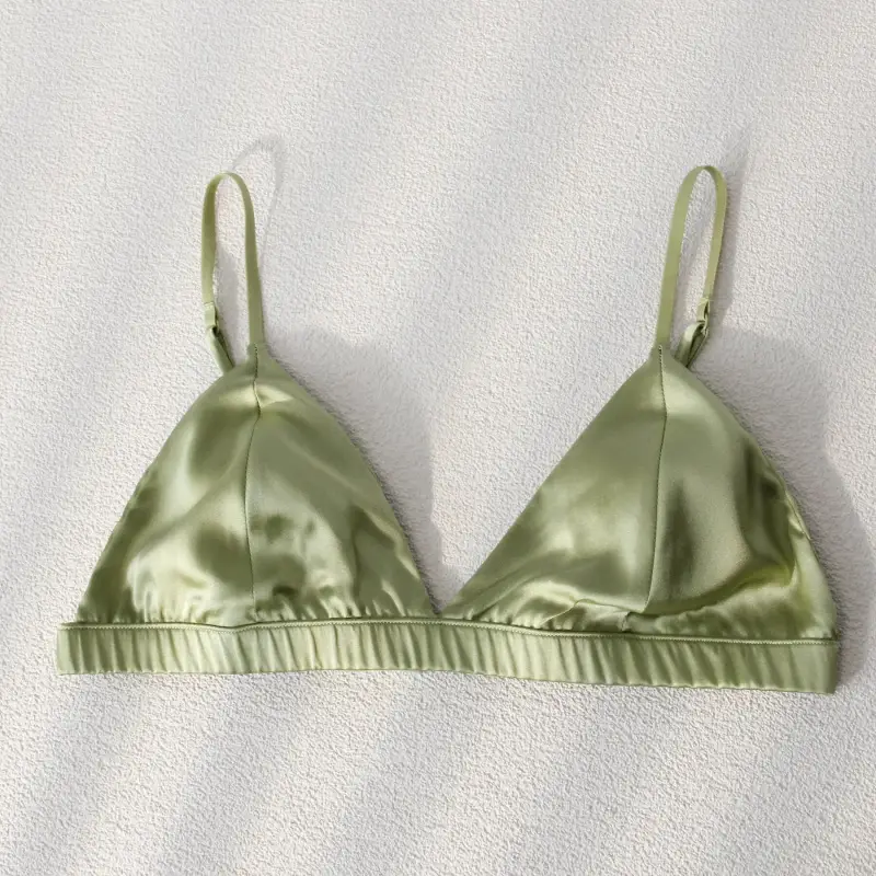 Idéale pour les femmes à la recherche d’un dessous discret, cette jolie bratelle satinée propose un maintien léger, soulignant la beauté de vos formes sans compromettre votre confort. Sa découpe triangle légèrement rembourrée rehausse la poitrine en offrant un galbe naturellement séduisant. Rafraîchissant, ce gracieux soutien-gorge en soie de mûrier mettra en valeur votre décolleté en toutes circonstances. Sous un chemisier transparent ou un débardeur coloré : il sera absolument parfait.